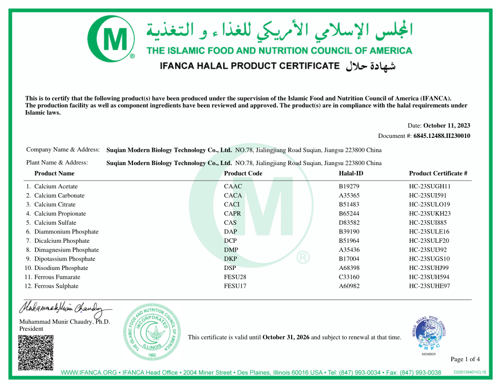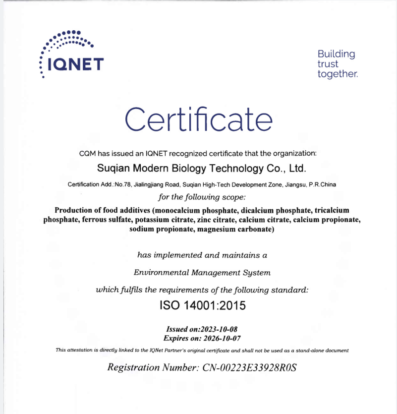 江蘇曉春新材料有限公司位于江蘇省宿遷市,在過去21年里一直是中國領先的鈣鎂基的藥物、食品和飼料原料生產商。我們的年生產能力為2萬噸,為20多個國家的380多個客戶提供制藥、食品和飼料配料解決方案。依托于“宿遷市現代生物科技股份有限公司”,我公司主要銷售磷酸鈣鹽、磷酸鎂鹽、磷酸鈉鹽、磷酸鉀鹽、磷酸銨鹽、復合磷酸鹽、檸檬酸鹽及鐵鹽、二氧化硅等多種食品添加劑。我們視質量為企業的生命,并致力于持續不斷提升...
